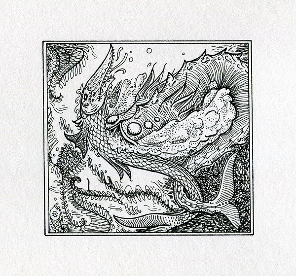 THESE UNDERWATER PREDATORS will keep growing as long as they can manage their stomachs upkeep. They may typically reach the size of a 3-man canoe before getting mortally wounded in territorial disputes or being eaten by an other, larger creature. This is for the best; as with increased size comes increased appetite, and large specimens are prone to snatching oars in an attempt to throw seamen overboard. If they could, they would eat whole ships: crew, hull, sail & all. Such hulking beasts often appear in tales about giant sea-serpents, such as the story of Vaader Aedelart.