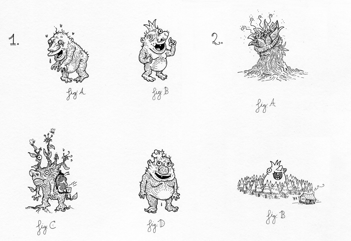 - fig 1.C – A heavily infested specimen. Small flowers have started to bloom from its barky skin, and a Moestiek has taken up residence in its hollowed-out body. The Kneutje does not actually suffer any physical pain from its infestations but may express signs of confusion and listlessness.