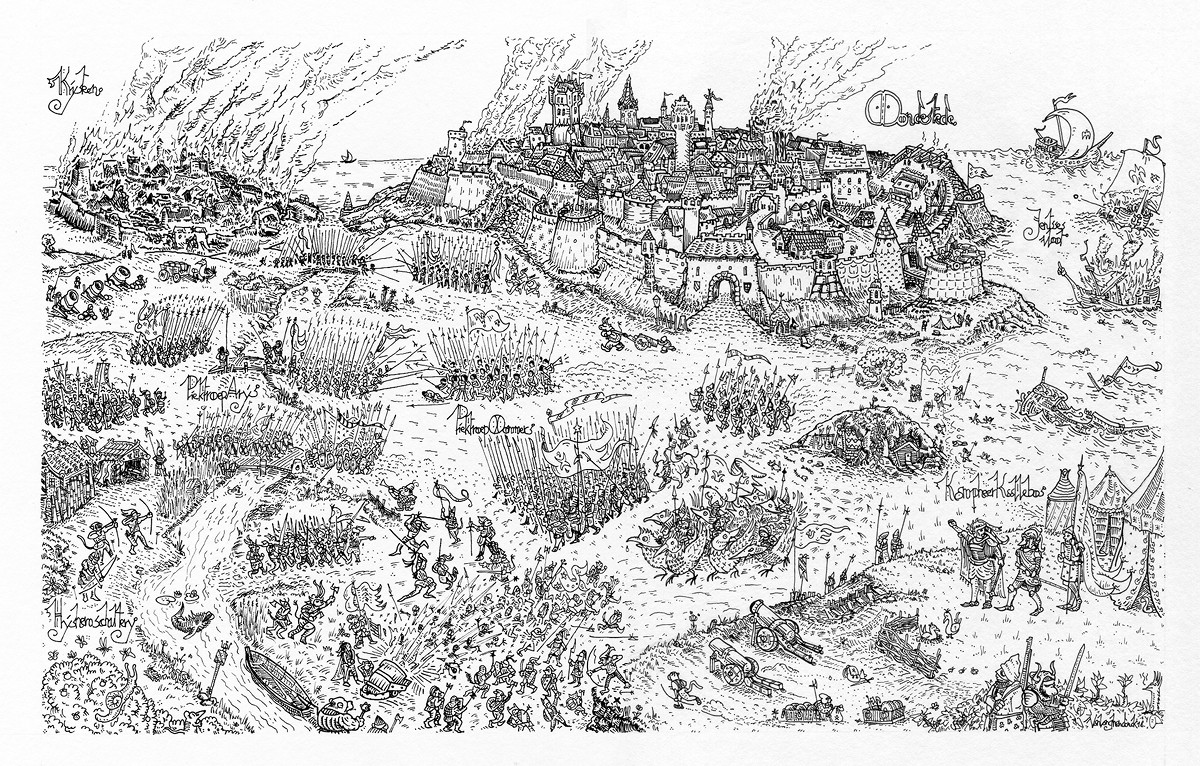 THE ORIGINS of this monstrous war are rooted in greed; after years of financial subterfuge the trade guild of Haltte managed to cut the city of Arys from a historical trade route, in order to drastically lower taxes on import products from Vrankke. (a region of which Arys is a gateway city) The Dukes of Arys, not wanting to lose their main source of income, assembled their bannermen, distributed the pikes, and called for military action against the Haltte league.
