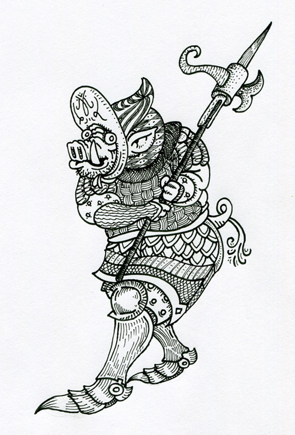She attained her fame & title at a pitched battle between opposing armies. She wrestled her way through the opposition, reached the enemy general, and -using her billhook- lifted him up by his underpants, stretched them up and over his head until they were torn apart. The general, having lost face in front of the entire opposing army, soon lost control over his army, and swiftly fled the field of battle.