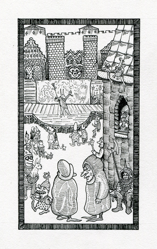 The illustration, made in the city of Arys shows us the Vieve Roep; the call to partake in a Vieve.